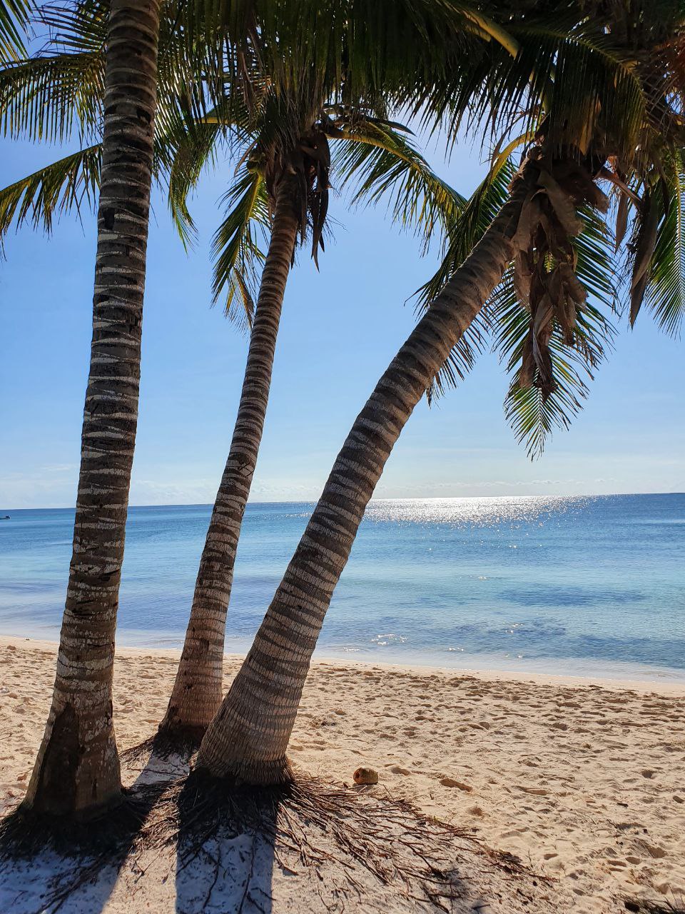 Мы доехали до Xpu-Ha как раз в половину девятого утра. Вход на этот пляж платный, стоит 50 песо с человека. Пускать нас сразу не захотели – по новому графику пляж теперь открывается в 9 утра. Мы подождали в машине, потом поехали внутрь, оплатив проход, выехали на парковку и пошли пешком в дальнюю часть пляжа. Мы были в этом месте впервые; пляж очень красивый, мелкий белый песок, штиль, пострассветное солнце, отражающееся в море – красота такая, что аж дух захватывает. Подошли к пальмам, стали располагаться: