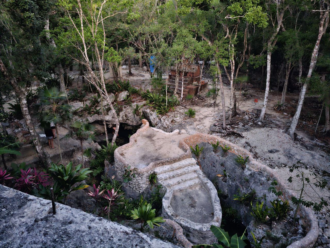 После этого я решил залезть на саму пирамиду (внутри совсем ничего интересного не оказалось) и сфотографировать сенот и окрестности: